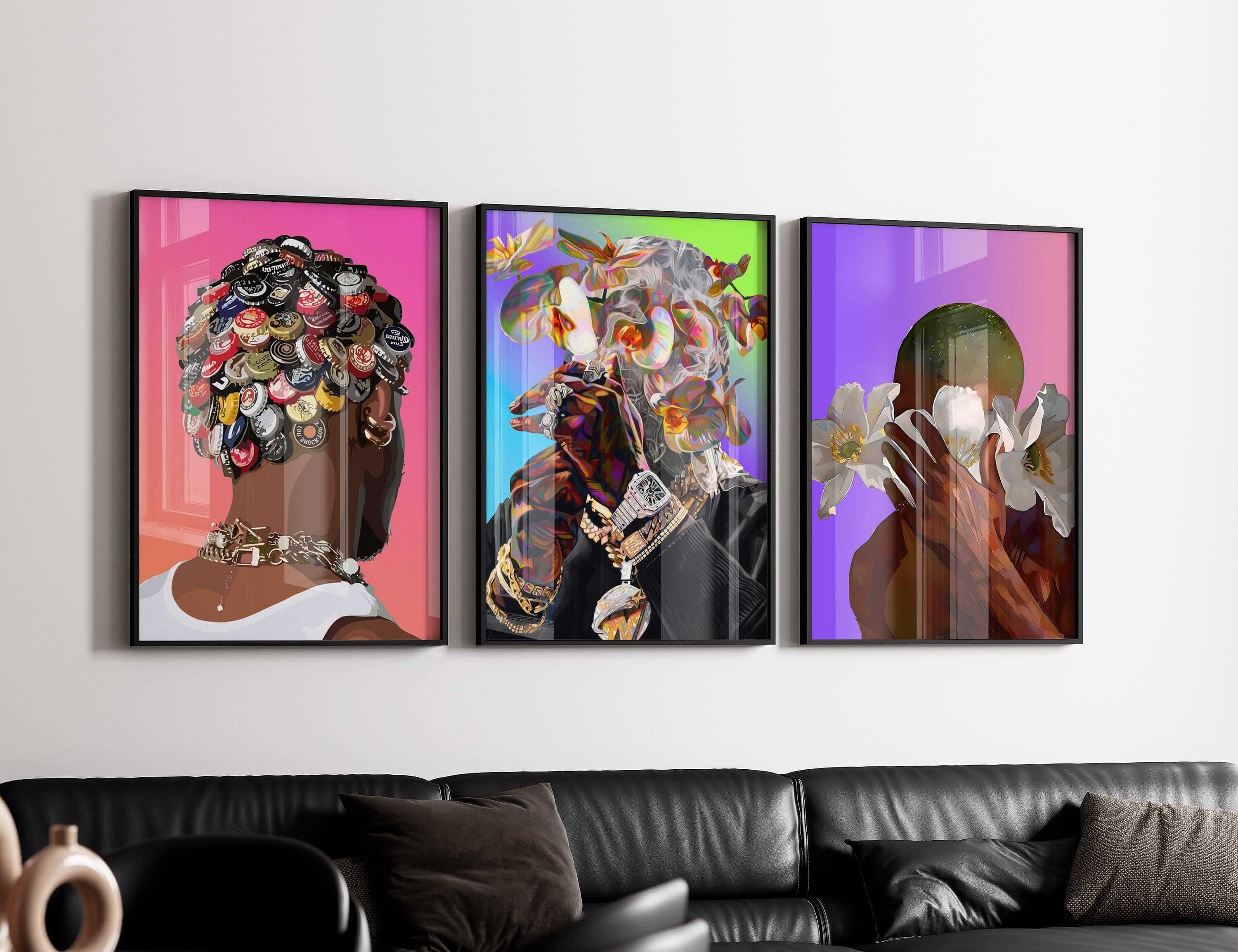 Discover the Abstract Flower Black Men Wall Art Set of 3, a unique collection that redefines modern decor. Each piece captures the essence of cultural strength and beauty, making it a standout addition to your living space.