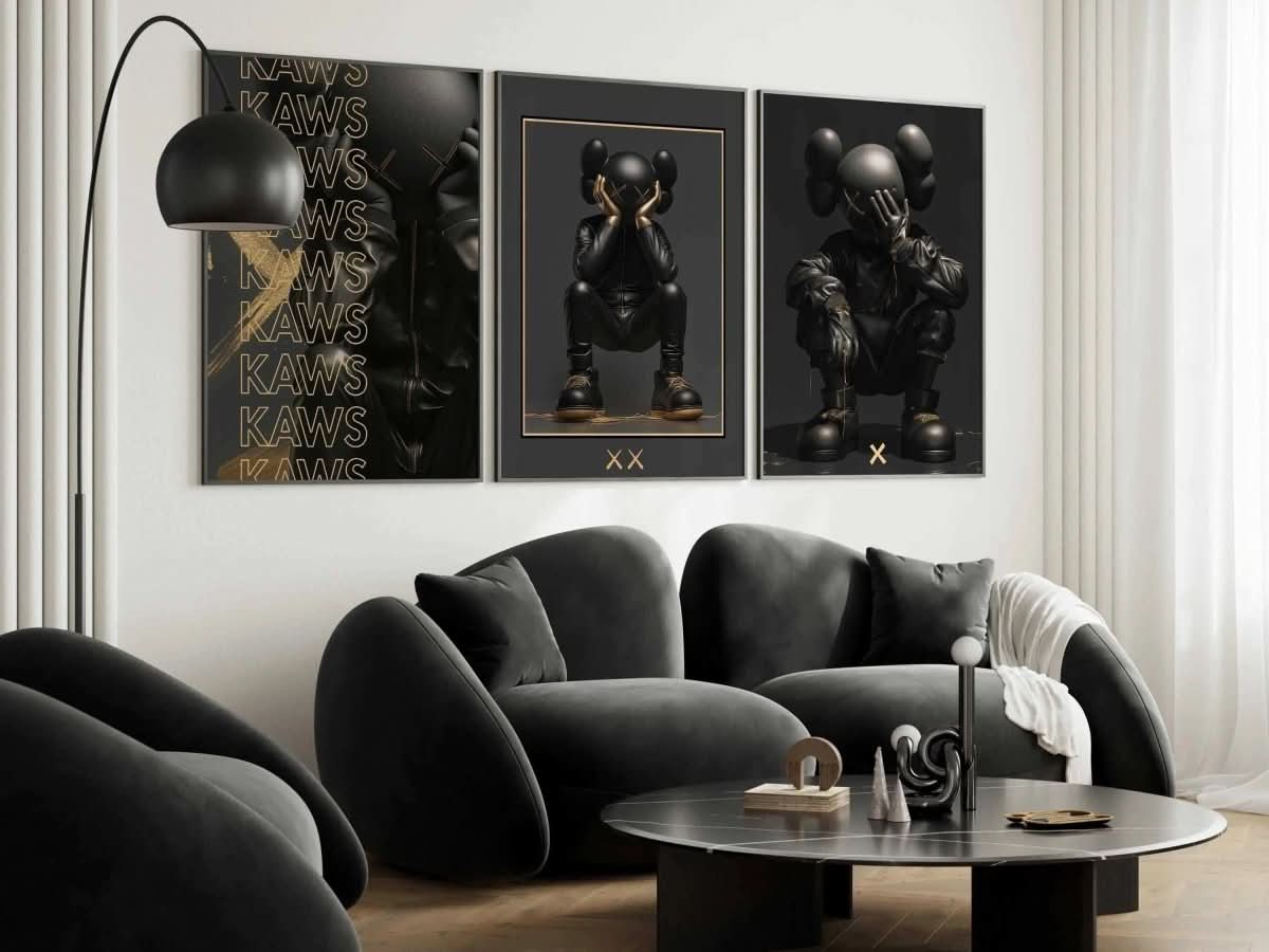 Image showcasing the full Abstract Gold Hypebeast Poster set against a stylish modern interior.