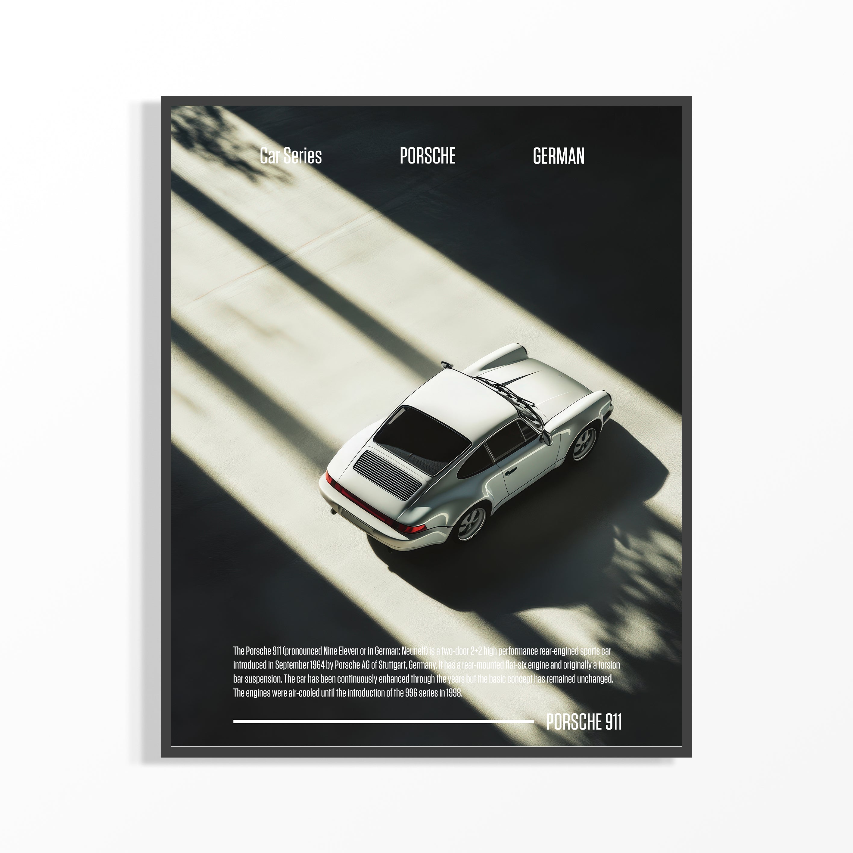 Car Art Vol. 6: Classic Porsche 911 Minimalist Edition features the storied 911 coupe in a sleek, sunlit architectural scene. This premium wall print puts iconic design and retro vibes at the heart of your gallery wall—simple, daring, and forever stylish.