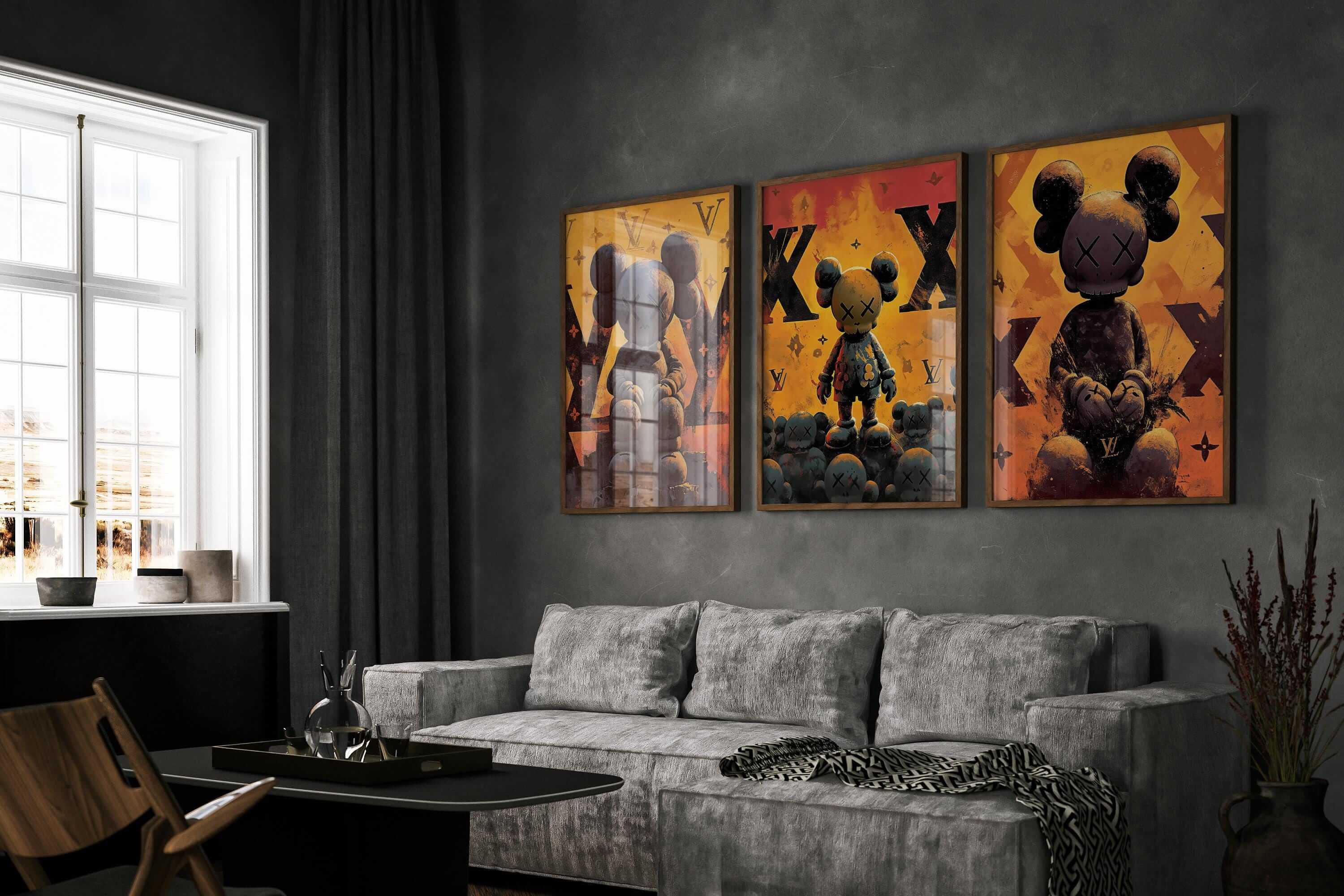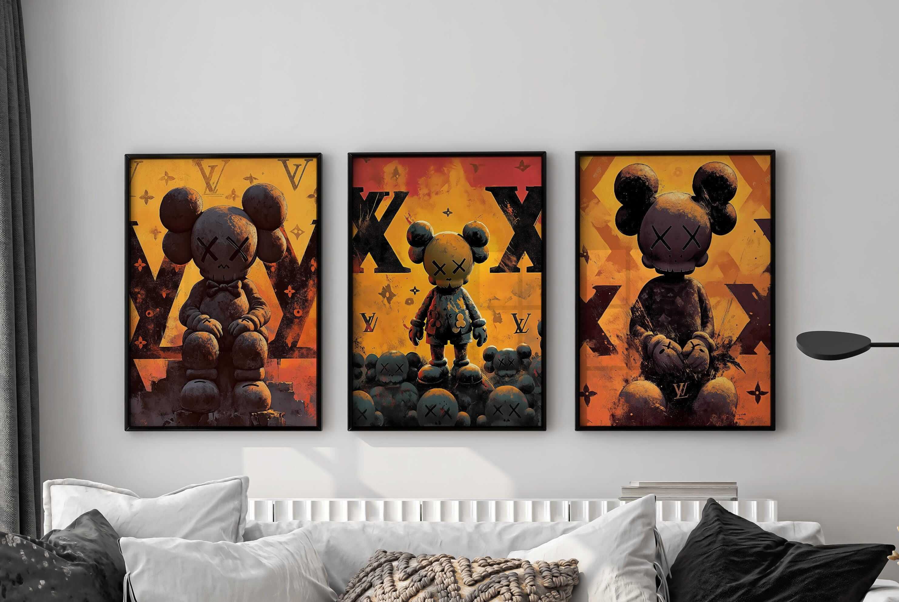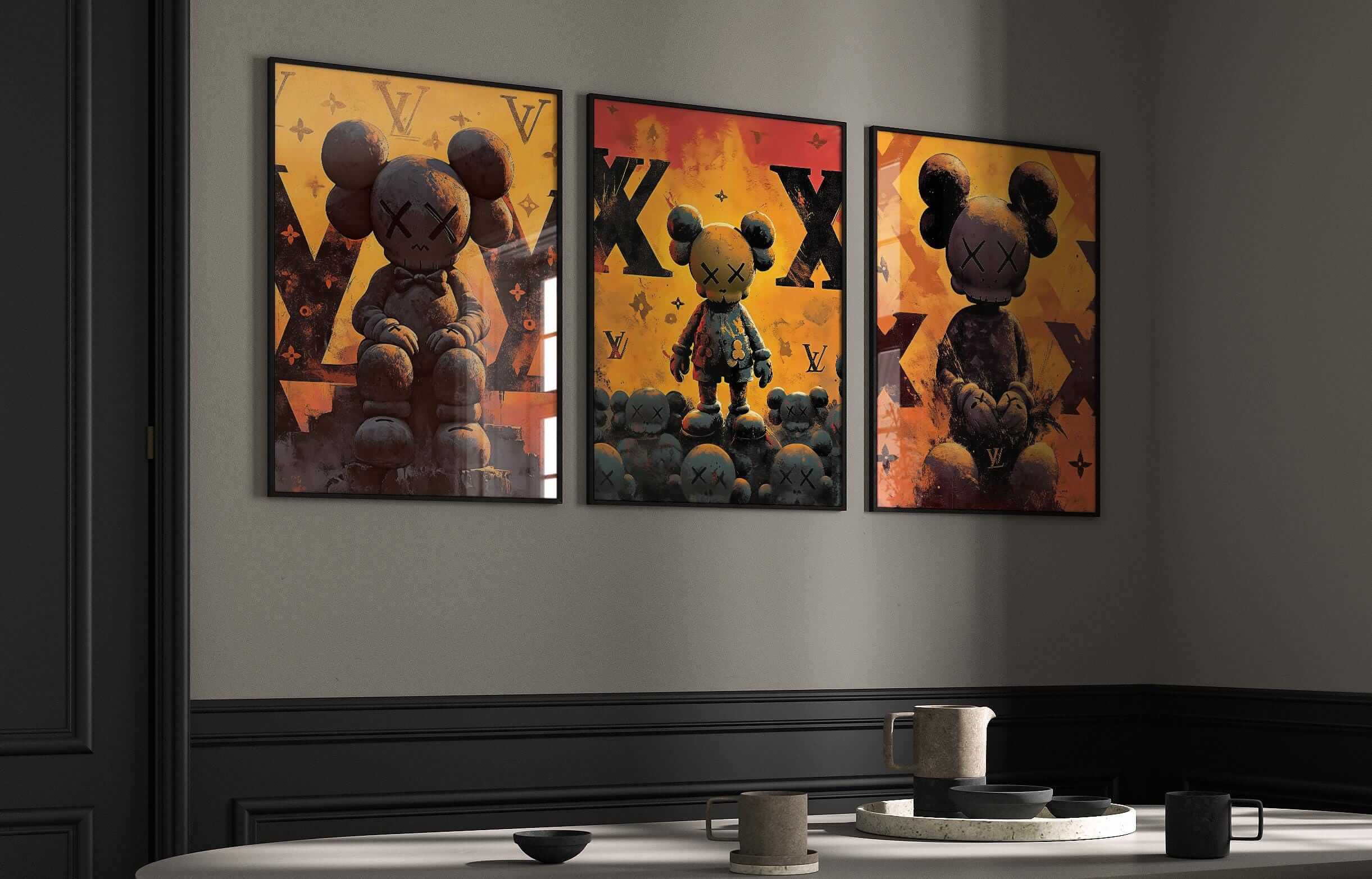 Designer Hypebeast Poster Set of 3 featuring vibrant KAWS art prints celebrating street culture.