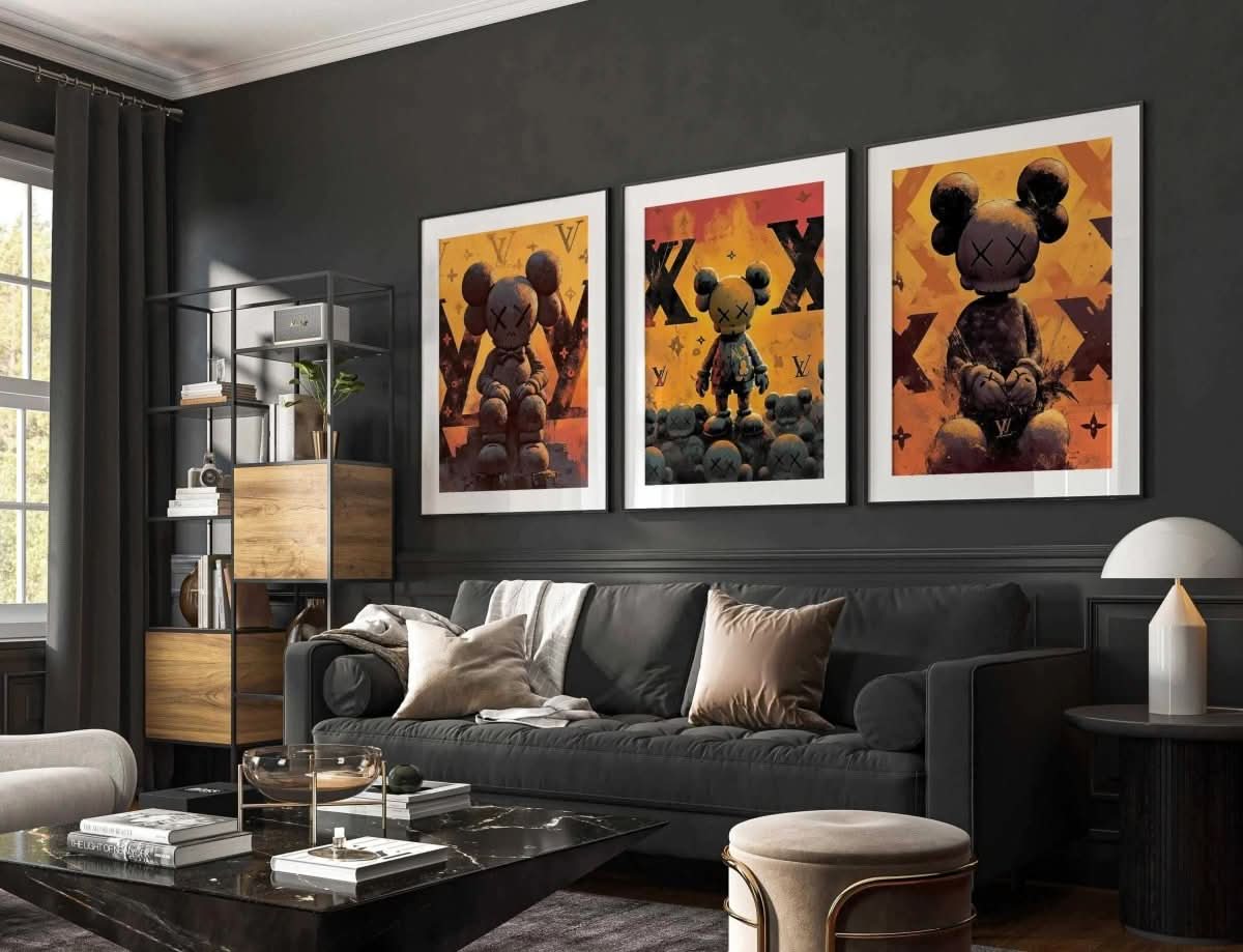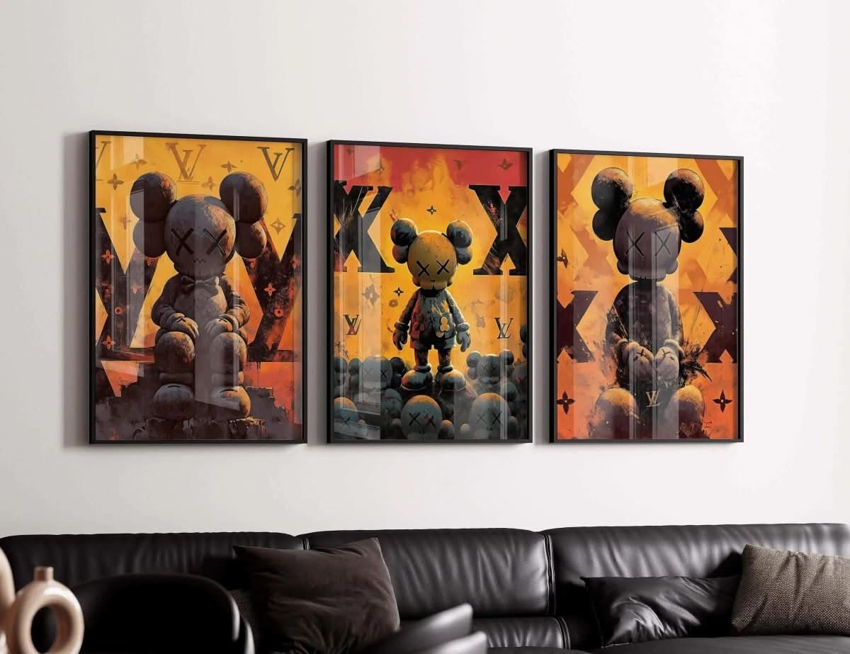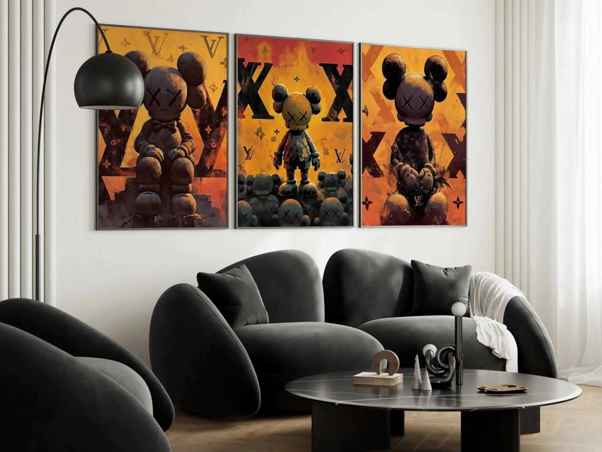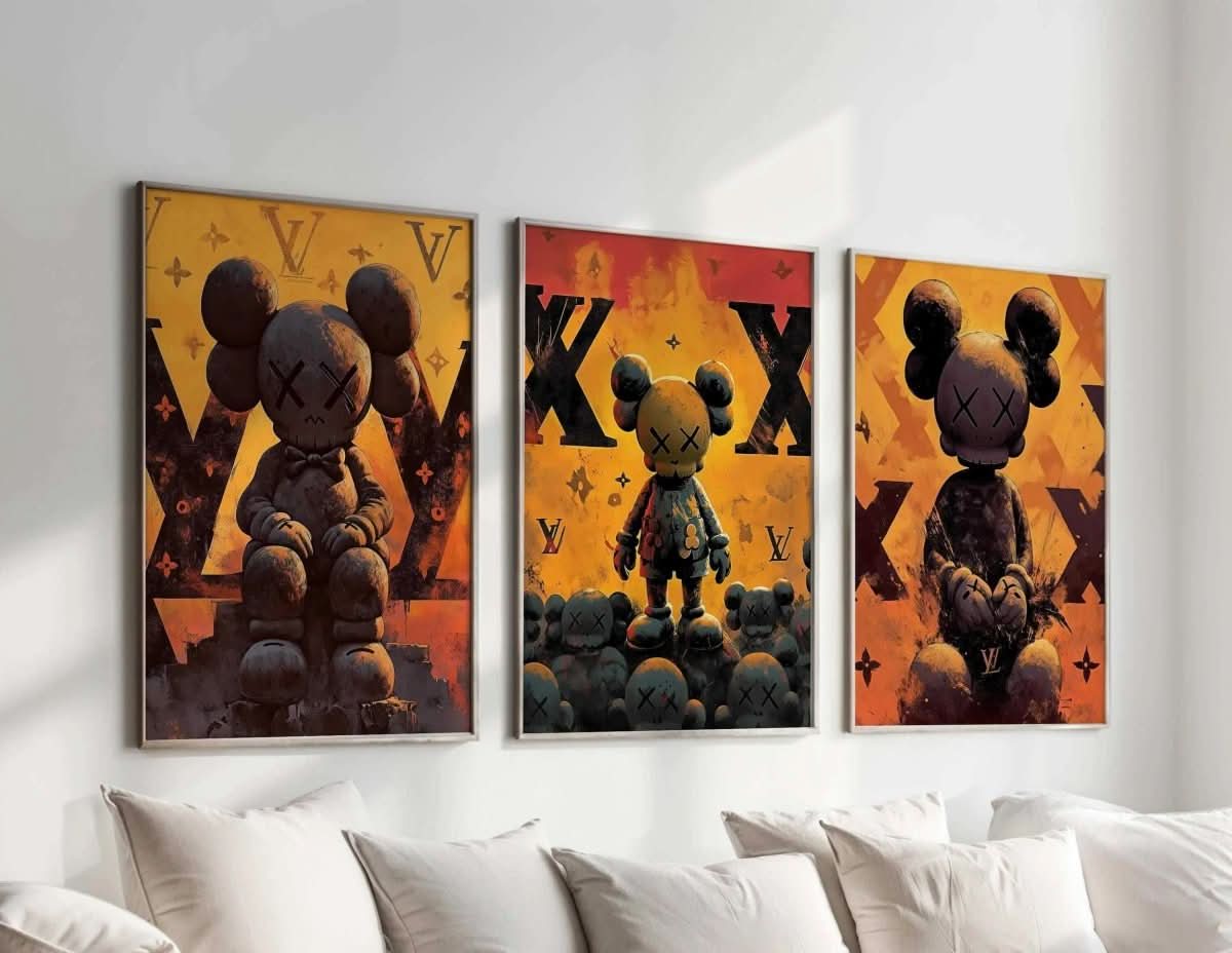 Designer Hypebeast Poster Set of 3 featuring vibrant KAWS art prints celebrating street culture.
