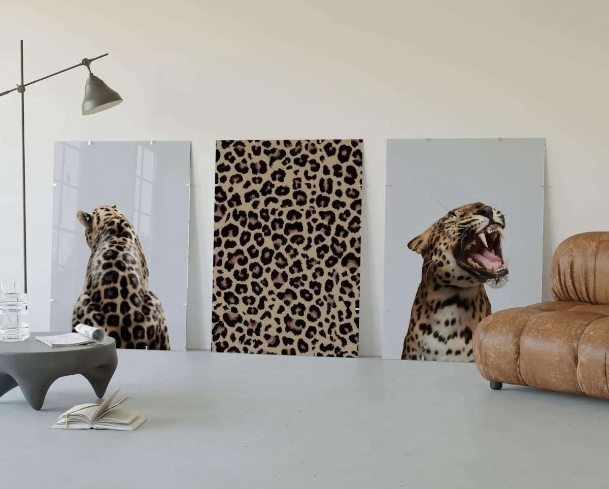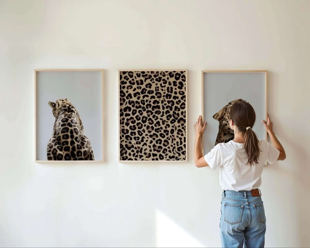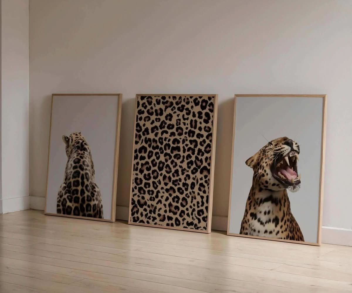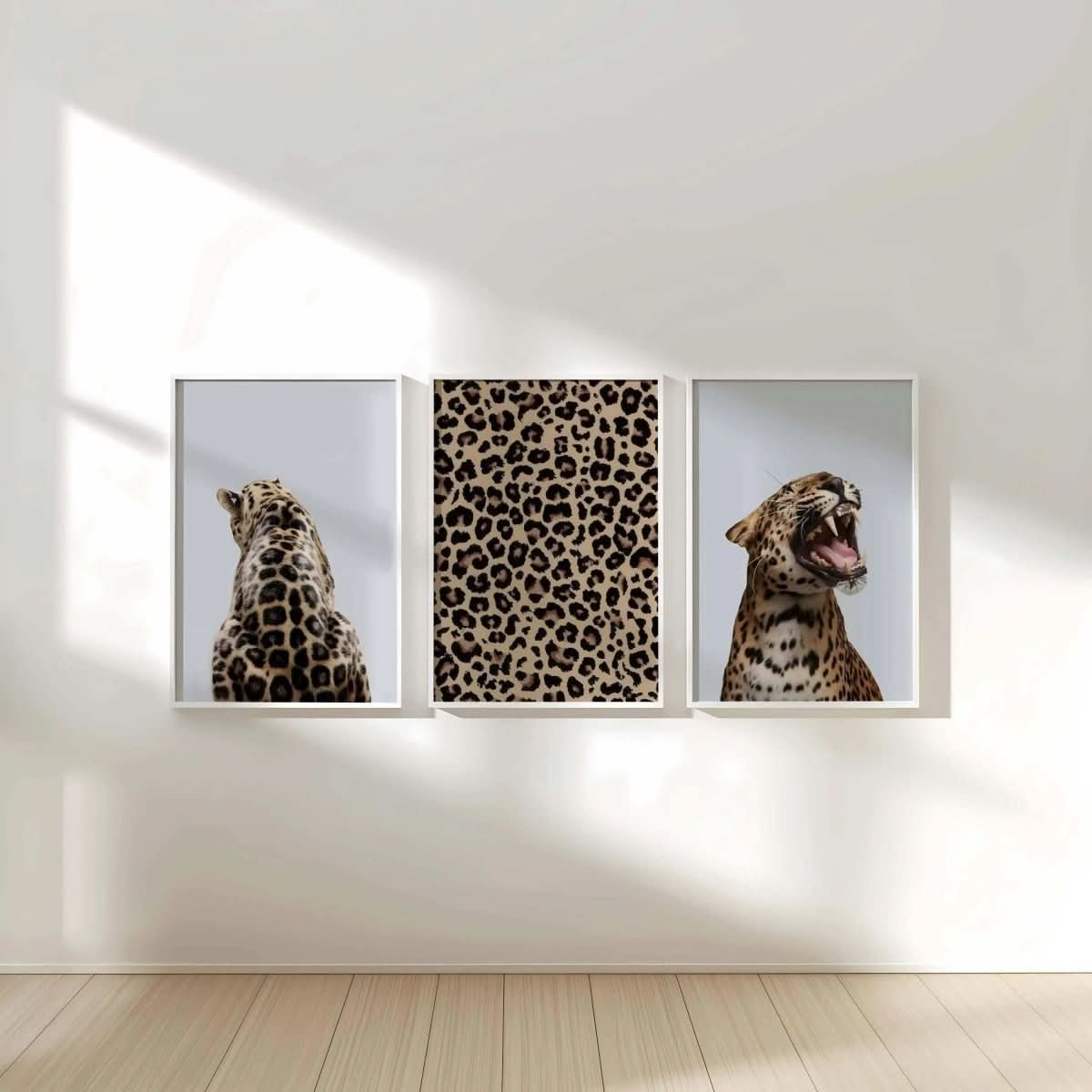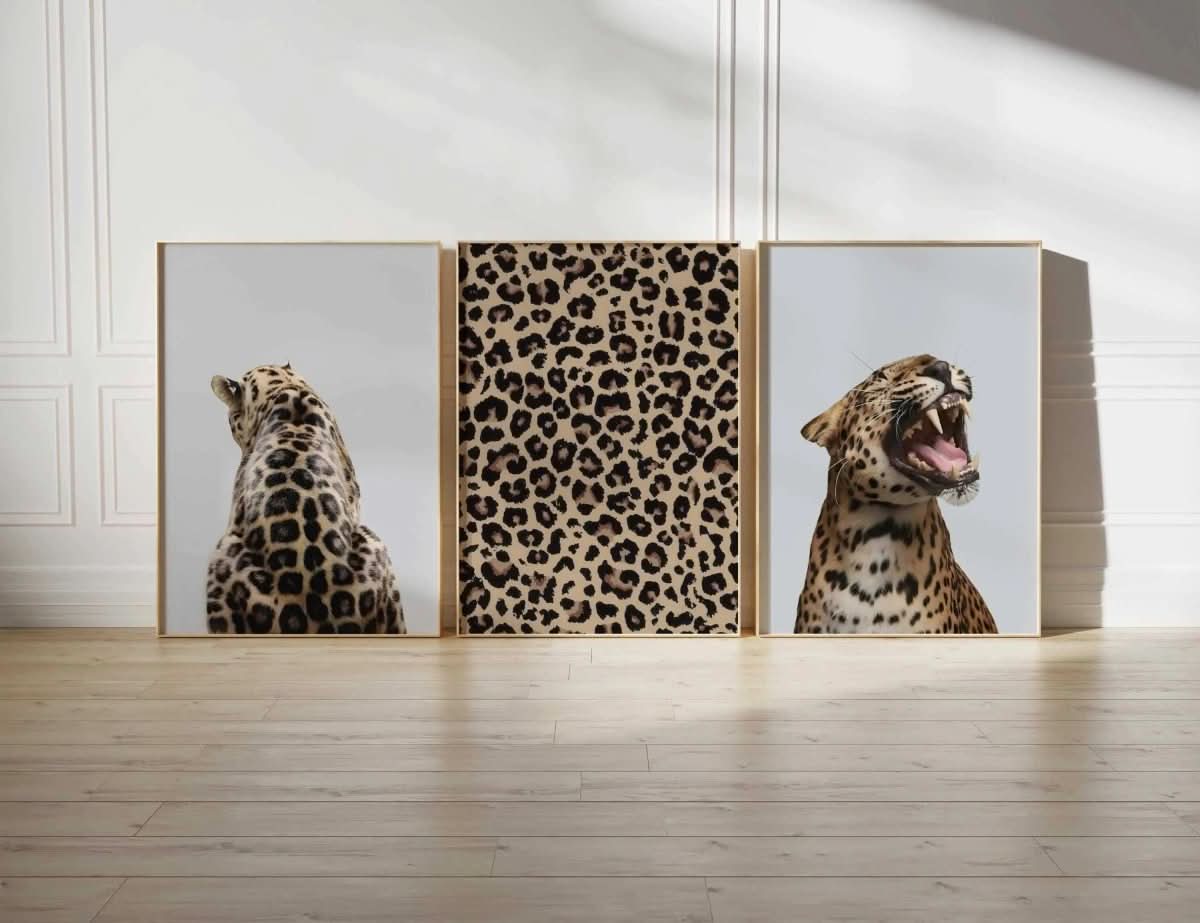 Leopard Design Wall Art Set of 3 with a printable leopard spot texture, ideal for adding unique flair to modern interiors.