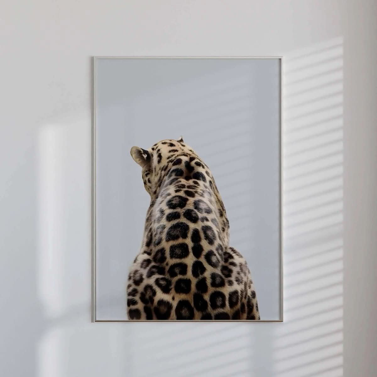 Leopard Design Wall Art Set of 3 with a back view of a leopard, emphasizing its unique leopard print texture for elegant decor.