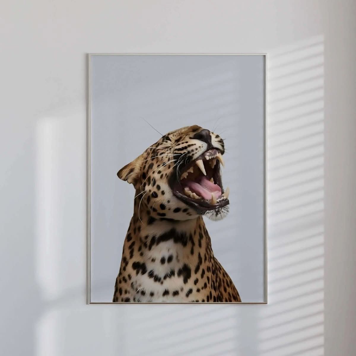 Leopard Design Wall Art Set of 3 featuring a fierce roaring leopard, ideal for a bold statement in any room.