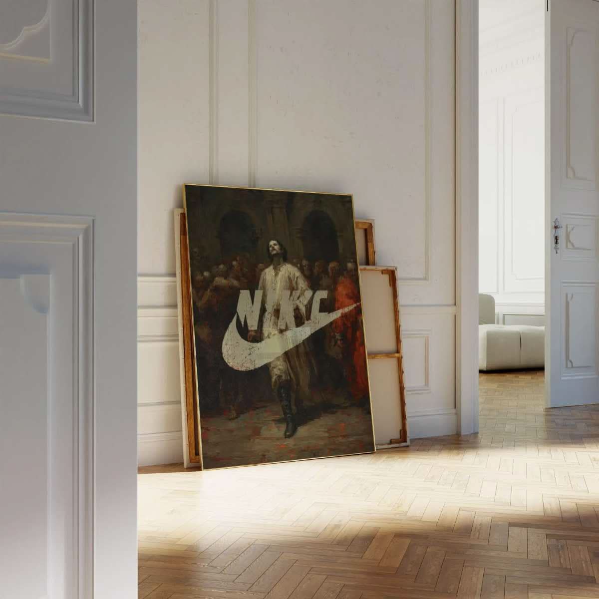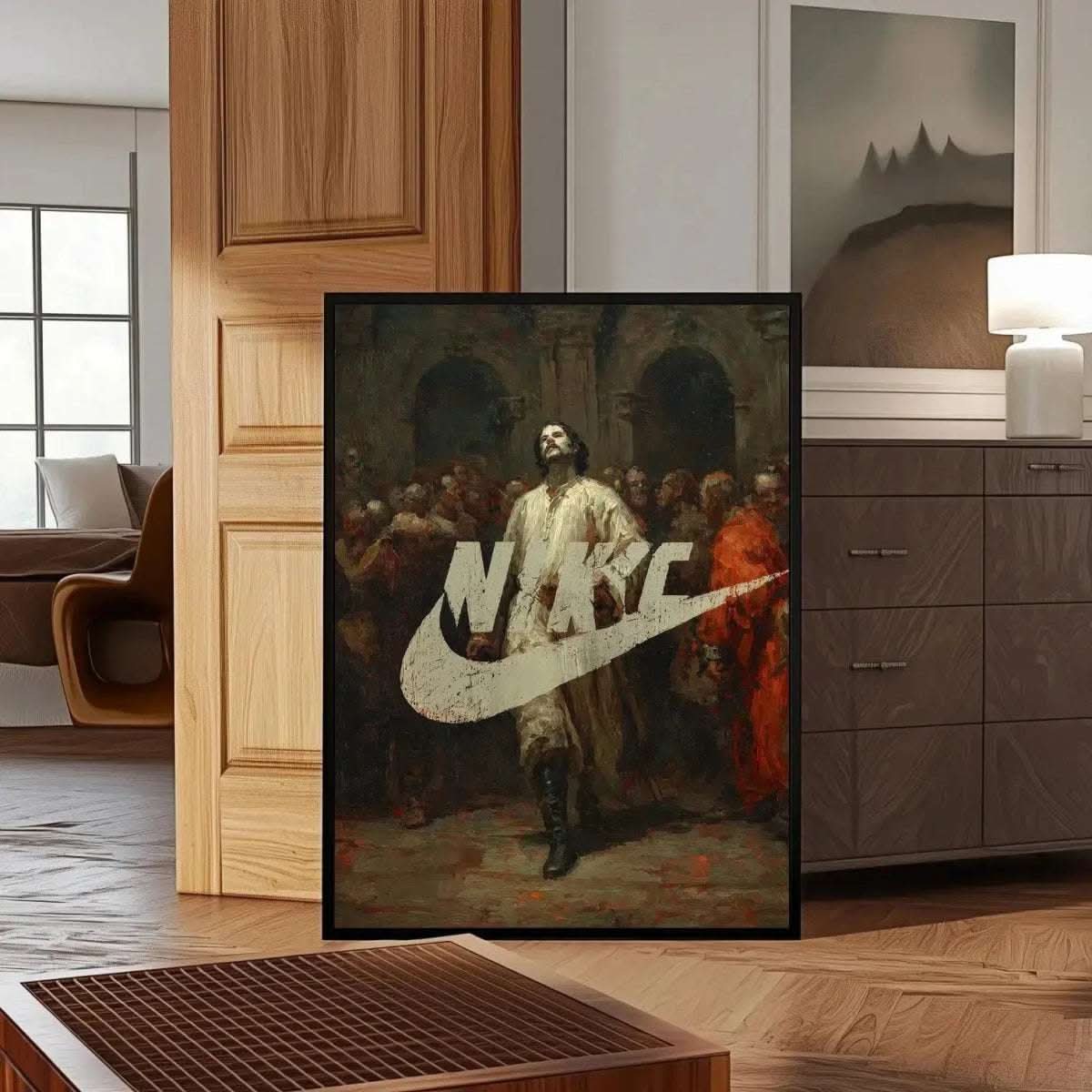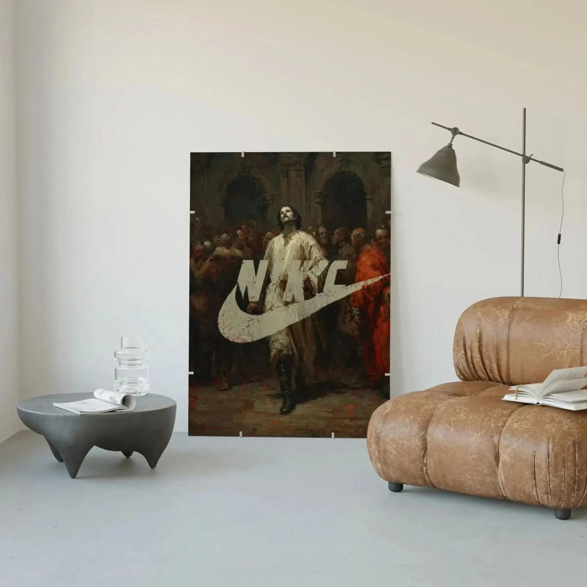 The Nike Renaissance Wall Art Print – Swoosh Classic is a stunning fusion of classic art and modern streetwear. This unique digital swoosh poster features a lone figure enveloped in baroque brushstrokes, seamlessly blending the worlds of sneaker culture and fine art.