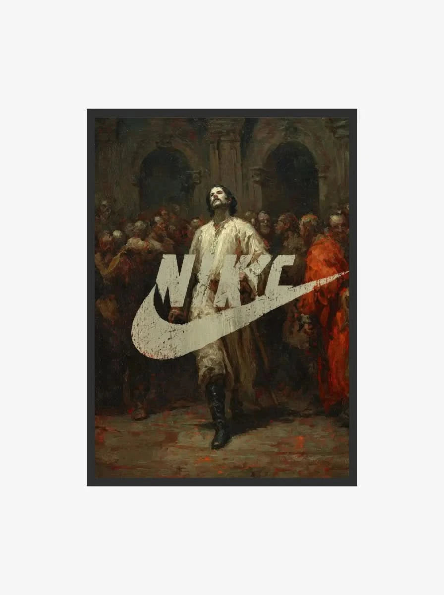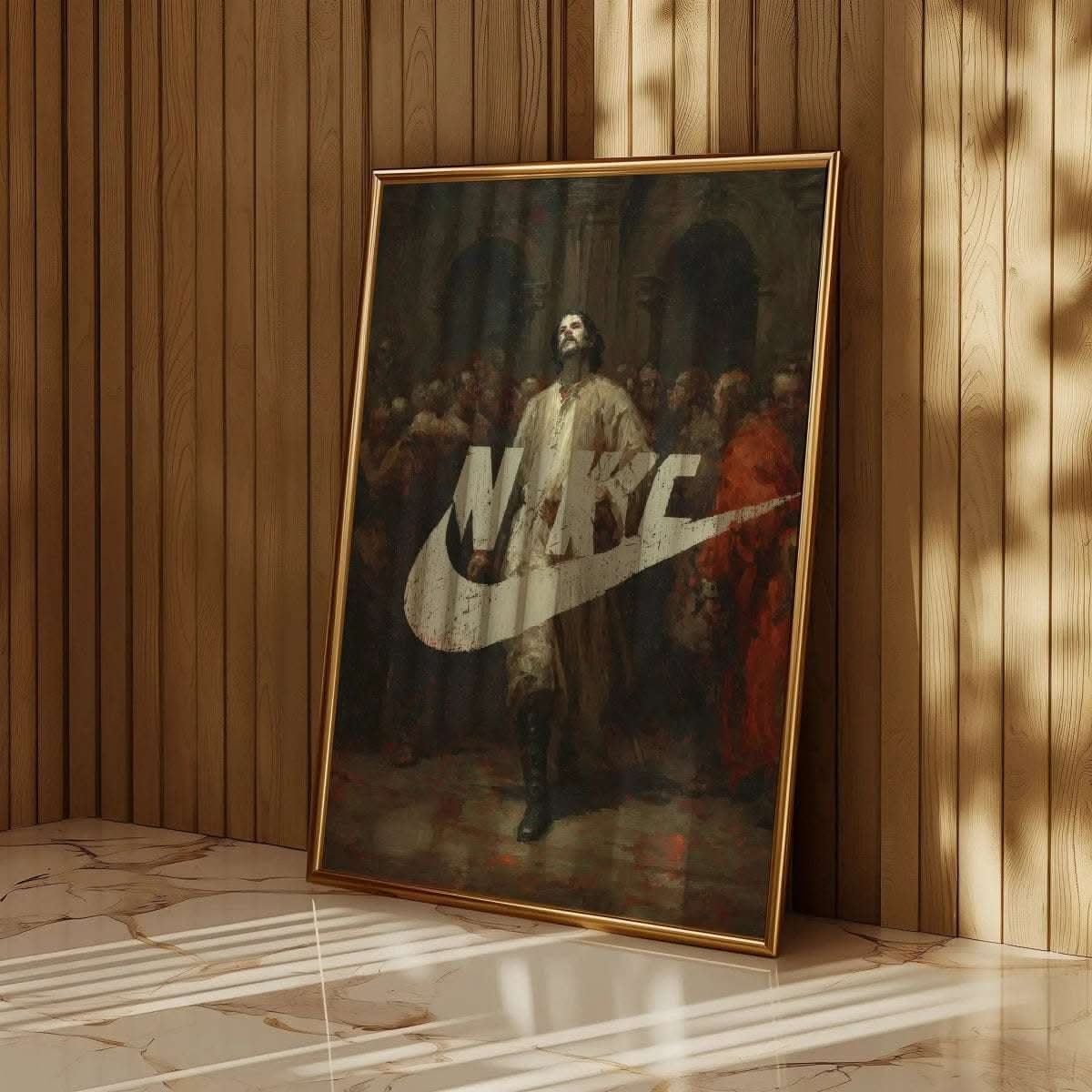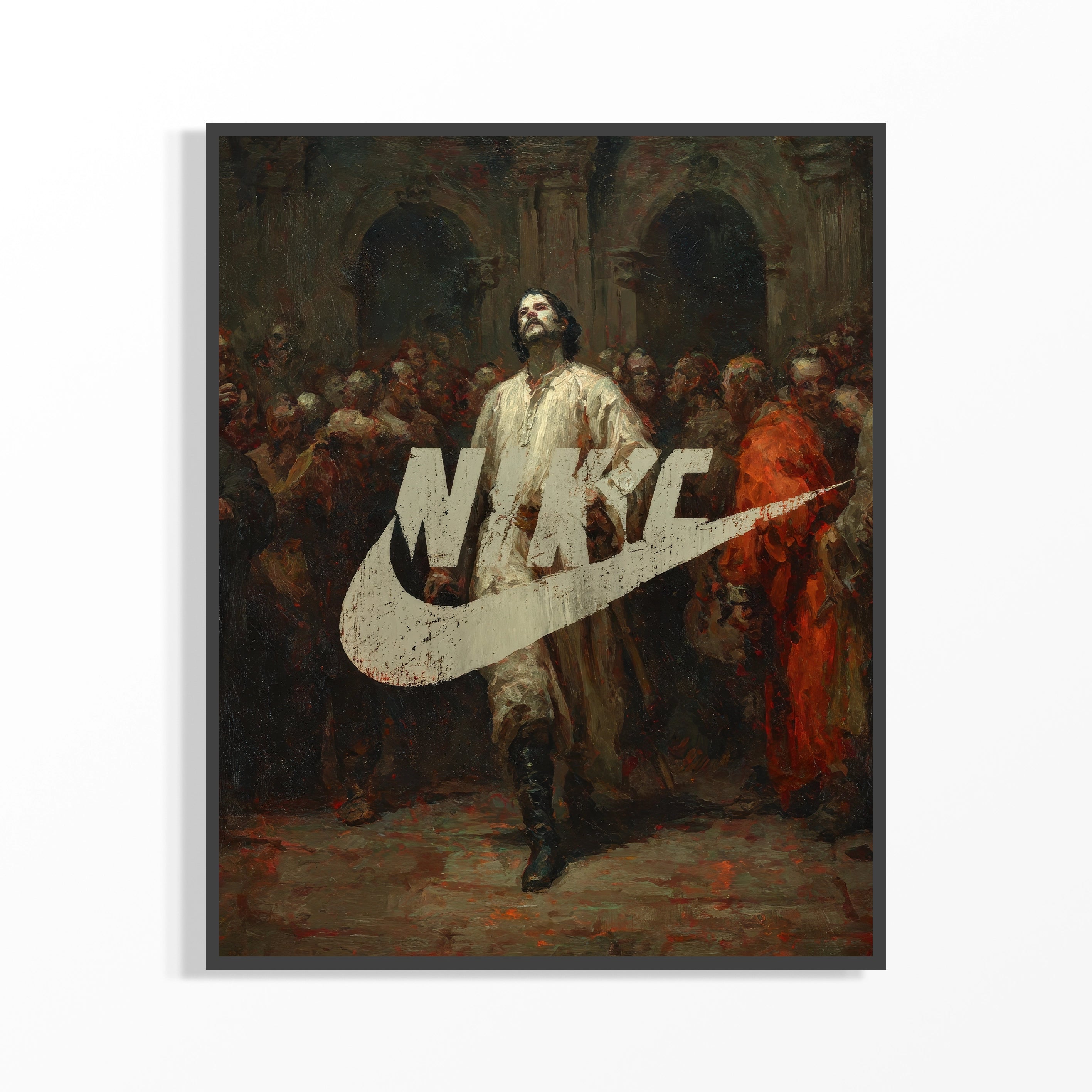 The Nike Renaissance Wall Art Print – Swoosh Classic is a stunning fusion of classic art and modern streetwear. This unique digital swoosh poster features a lone figure enveloped in baroque brushstrokes, seamlessly blending the worlds of sneaker culture and fine art.