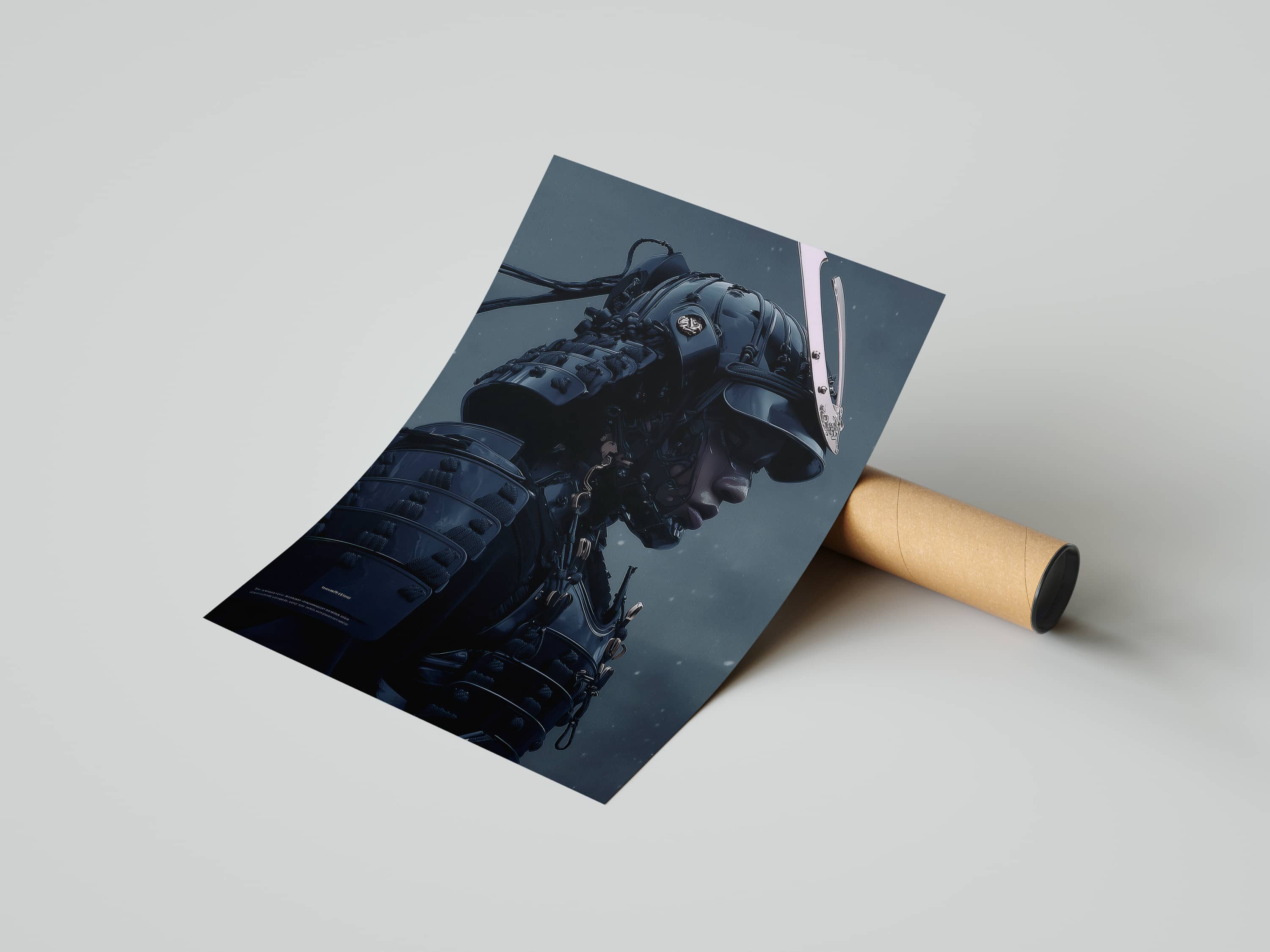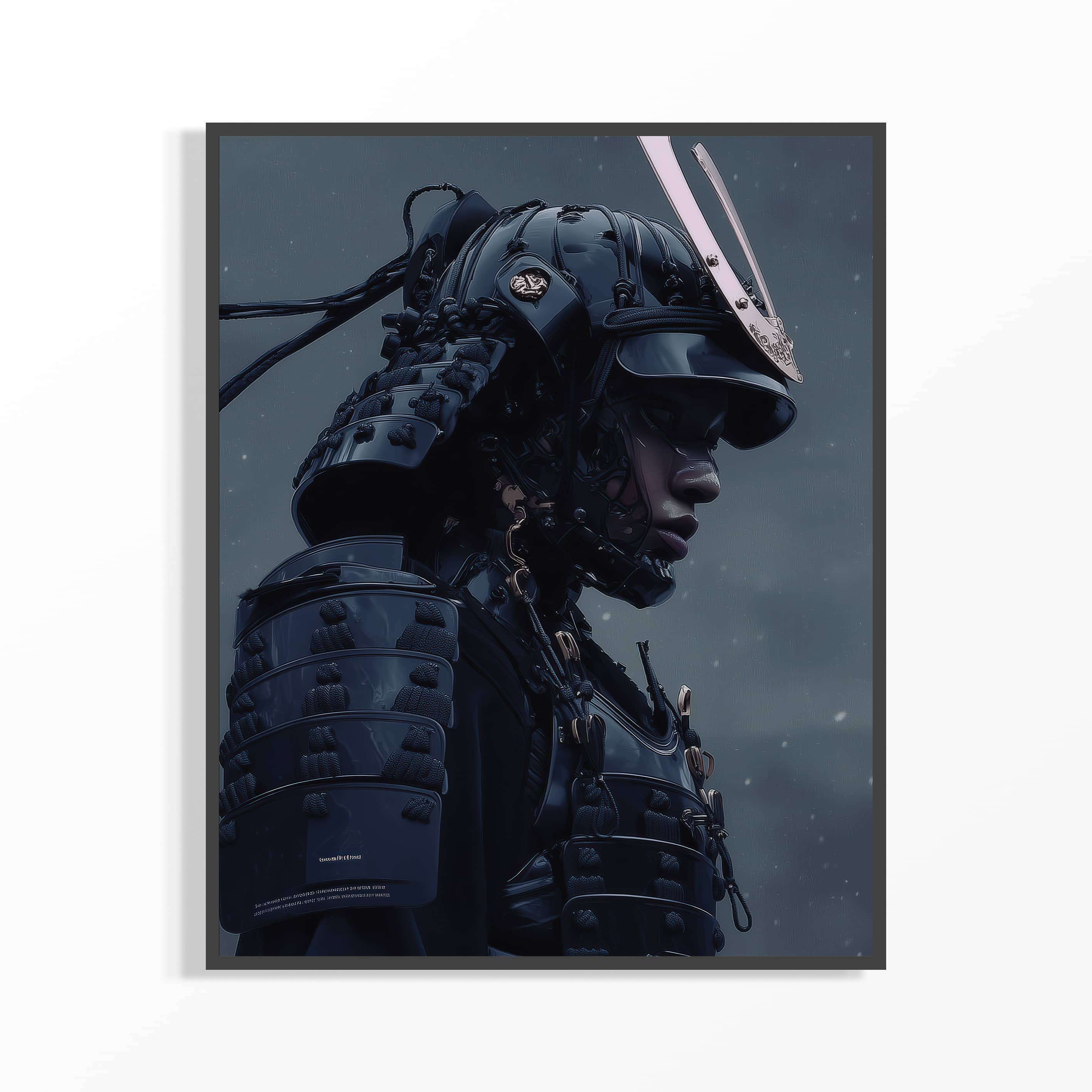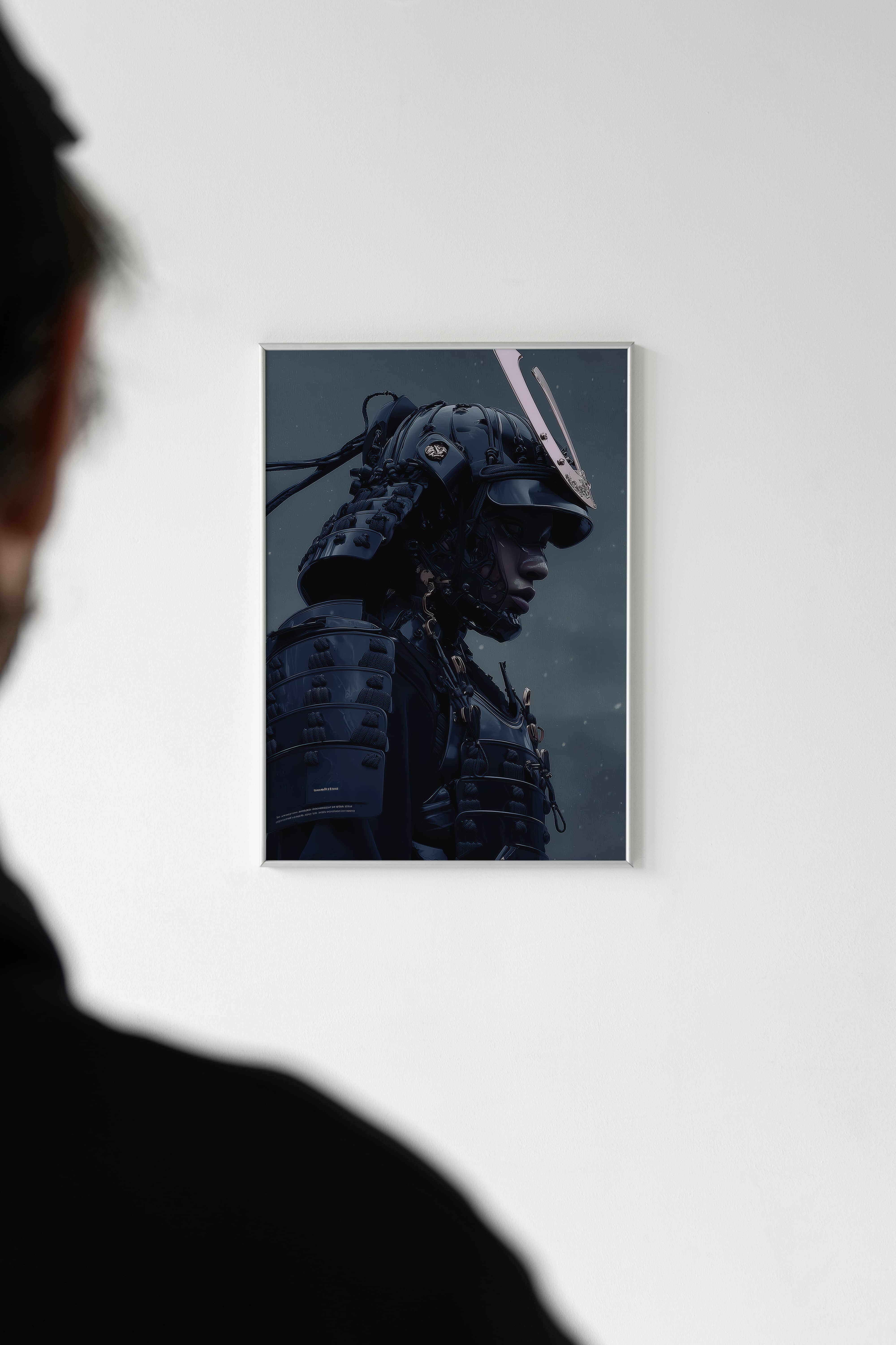 Samurai Art Vol. 4: Midnight Ronin showcases a lone, powerful samurai in deep blue-black armor under a cinematic night sky. The perfect collectible poster for lovers of Japanese history, martial arts, and dramatic decor.